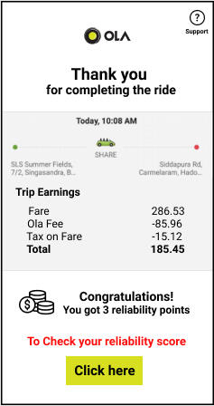 If a driver claims his reliability points benefit on long rides, he has to pay only 15% commission to ola. This will subsequently increase the earning on that particular ride.