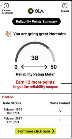 Here the progress of the driver along with the history of points earned on the specific ride will be shown